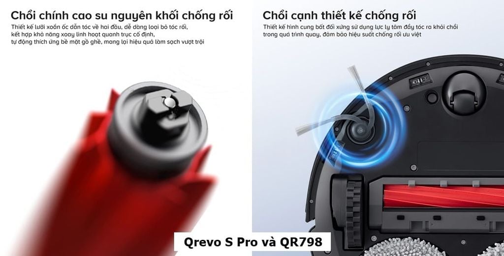 Qrevo S Pro và QR798 sử dụng hệ thống chổi kép chống rối cho hiệu quả cao hơn